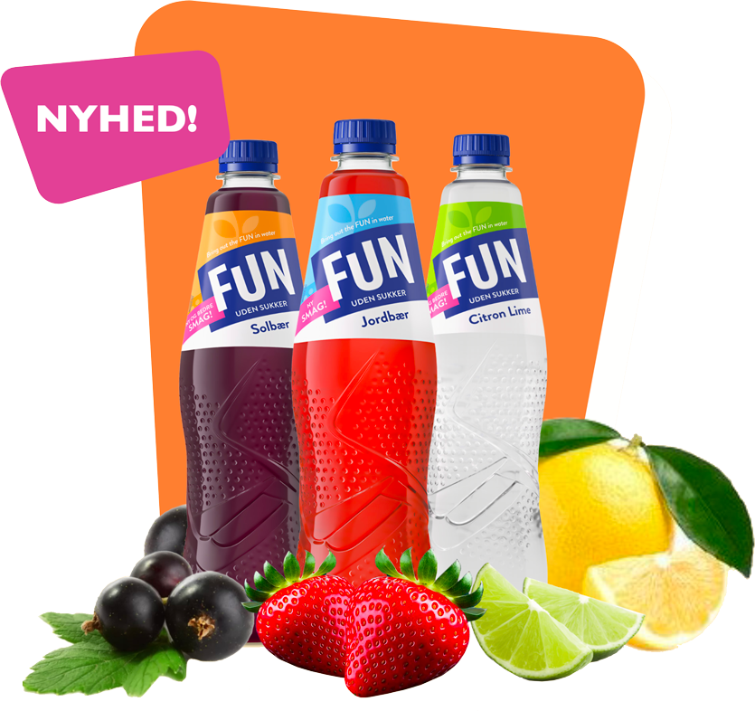 Prøv den nye Fun Jordbær og oplev de opgraderede smage af Solbær og Lime/Citron. Friskere, frugtere og endnu mere læskende!