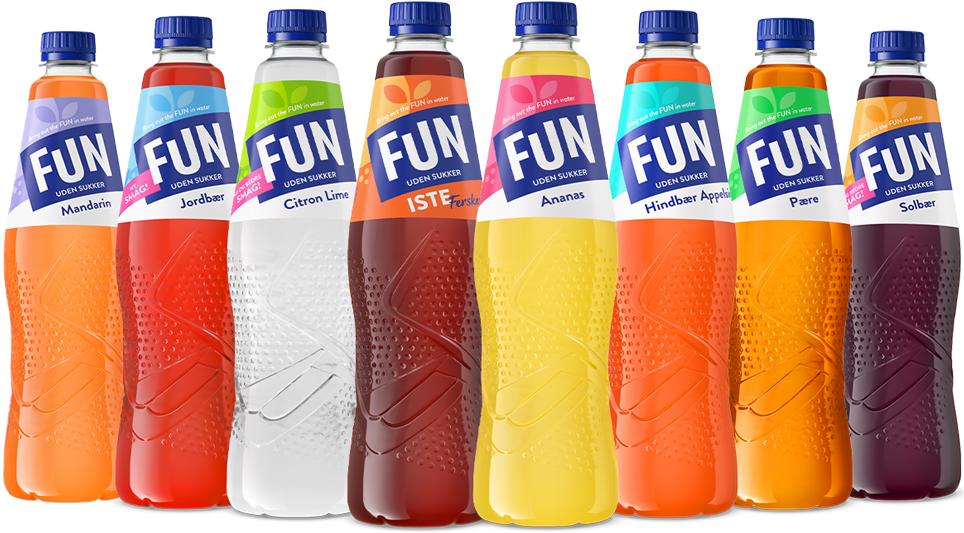 FUN Light indeholder sødestofferne cyklamat, acesulfamkalium og sucralose. Dette står selvfølgelig også på ingredienslisten på flasken.