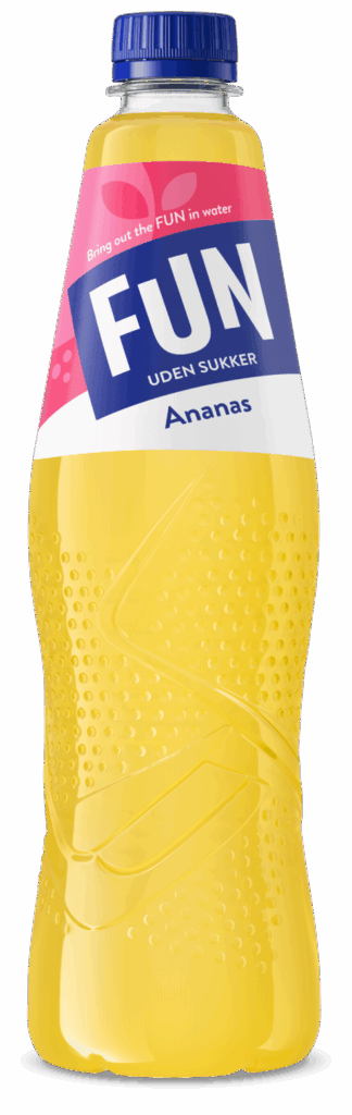 FUN Ananas har en frisk og fyldig smag af ananas. Smagen har en tilpas blanding af sødme og syrlighed, der gør den til en ideel tørstslukker. Produktet er uden tilsat sukker – 0 kcal som færdigdrik og uden kunstige farver. FUN flasken er lavet af genanvendt plast.